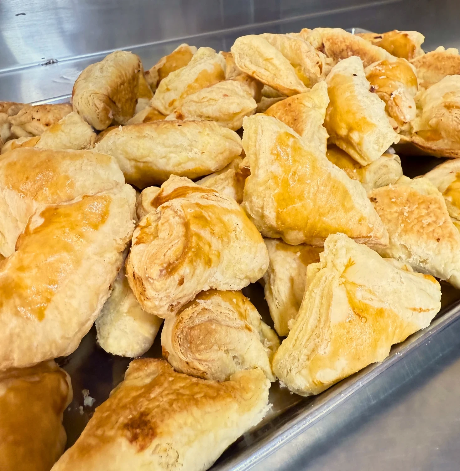 Nuestras empanaditas con queso están hechas con una masa casera y liviana, horneadas hasta alcanzar un dorado perfecto. En su interior, esconden un relleno cremoso de queso que se derrite al primer bocado, ofreciendo una experiencia cálida y reconfortante.