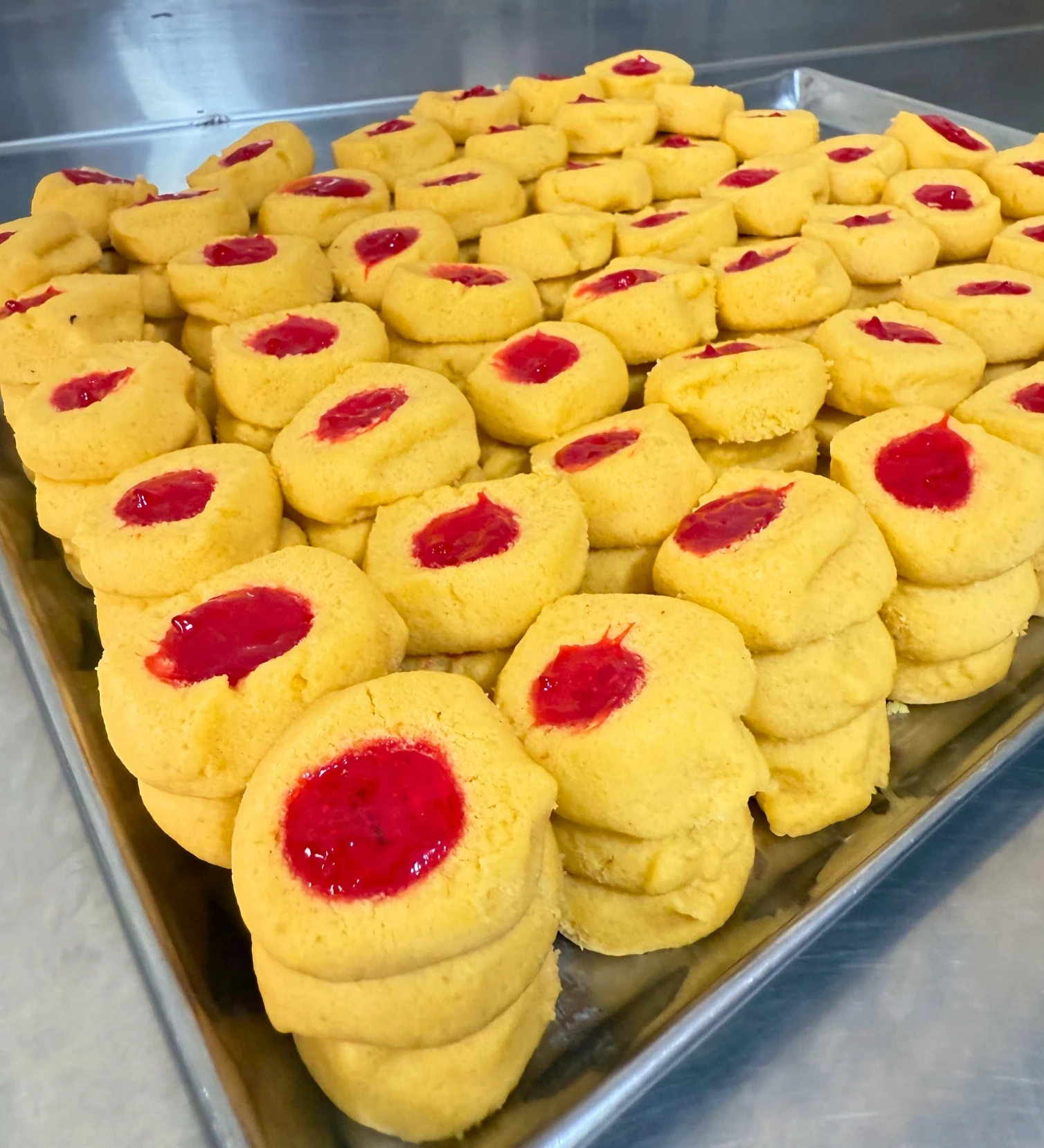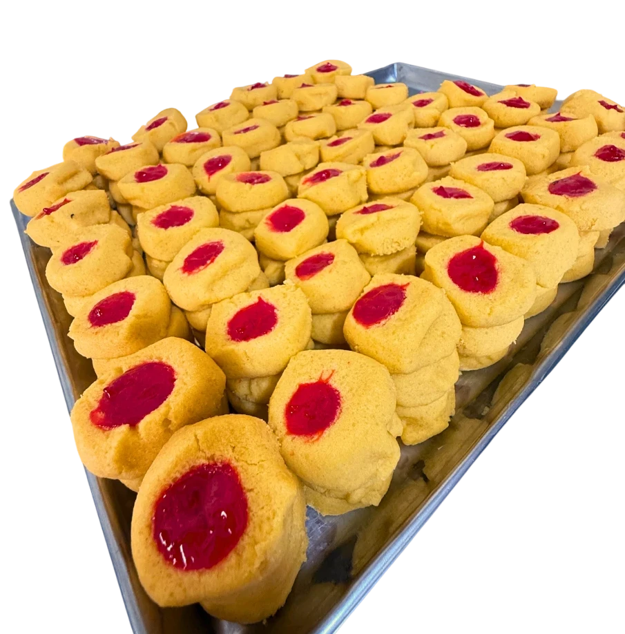 Las galletas Niditos de Amor son pequeñas joyas de la repostería artesanal. Con una base suave y mantecosa, cada galleta es cuidadosamente moldeada en forma de nido y rellena con una cucharadita de mermelada de fresa, creando una combinación perfecta entre textura y sabor.